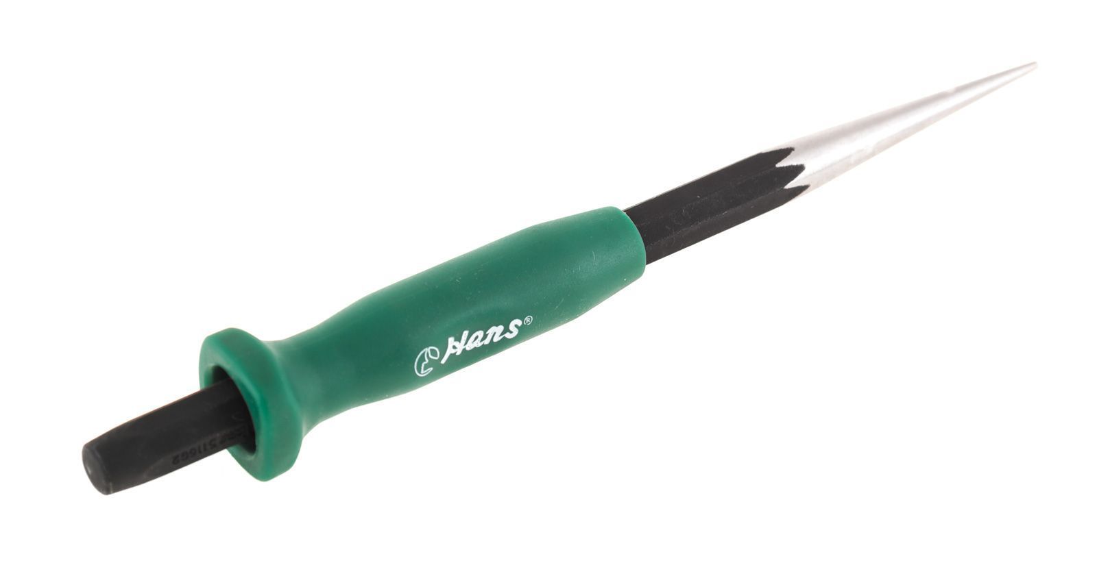 5116G02 Бородок с протектором 2х9,5х185  Бородки серии 5116G изготовлены из хромомолибденовой стали, придающей инструменту особую прочность и устойчивость к сколам, что не мало важно для безопасной работы.  Фосфатированное покрытие защищает инструмент от воздействия влаги и грязи.  Бородки серии 5116G снабжены удобной рукояткой, изготовленной из пластика из мягкого материала на основе резины. Такая рукоятка хорошо защищает руку от отдачи во время работы.
