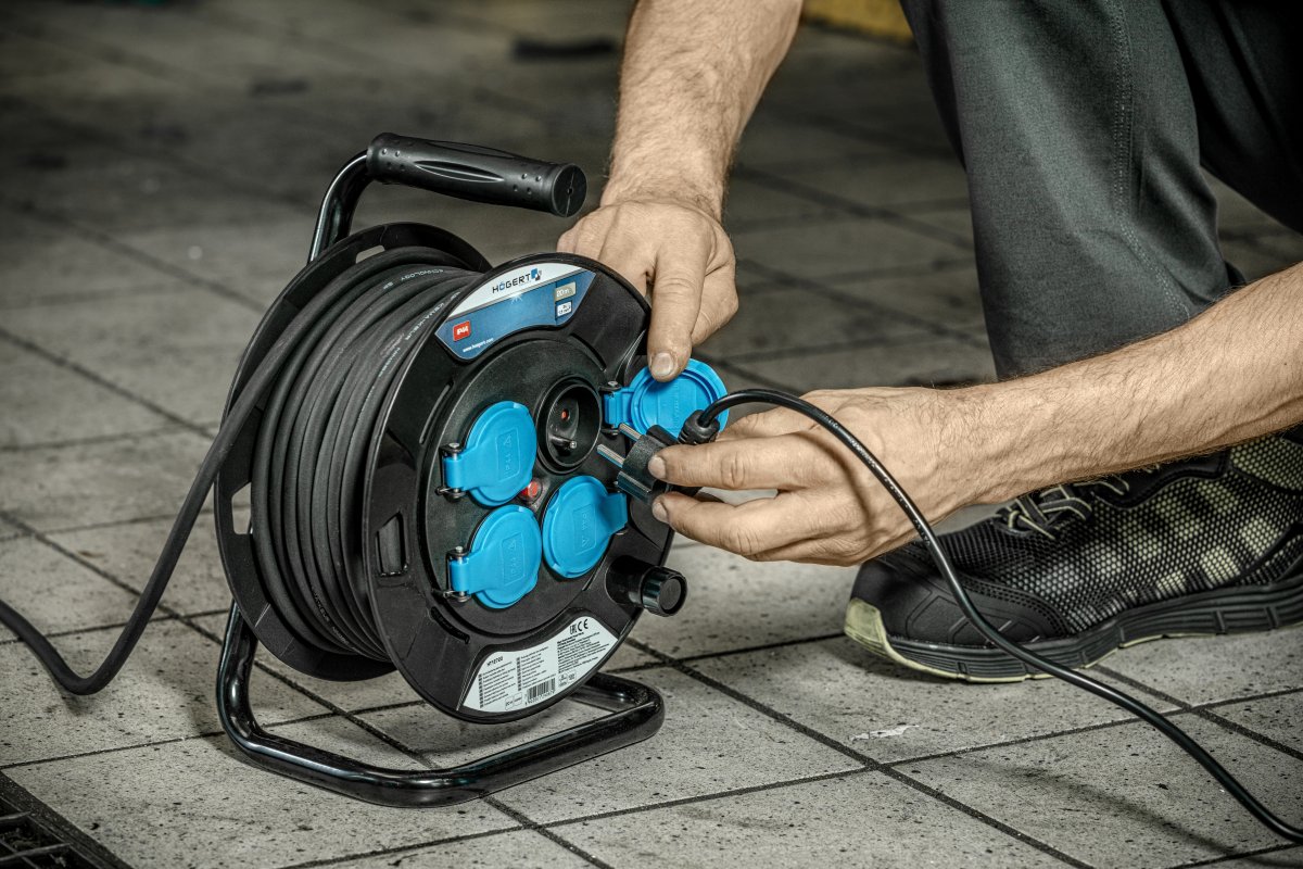 Высококачественный, практичный барабанный удлинитель позволяет одновременно подключить 4 устройства общей мощностью до 3000 Вт.