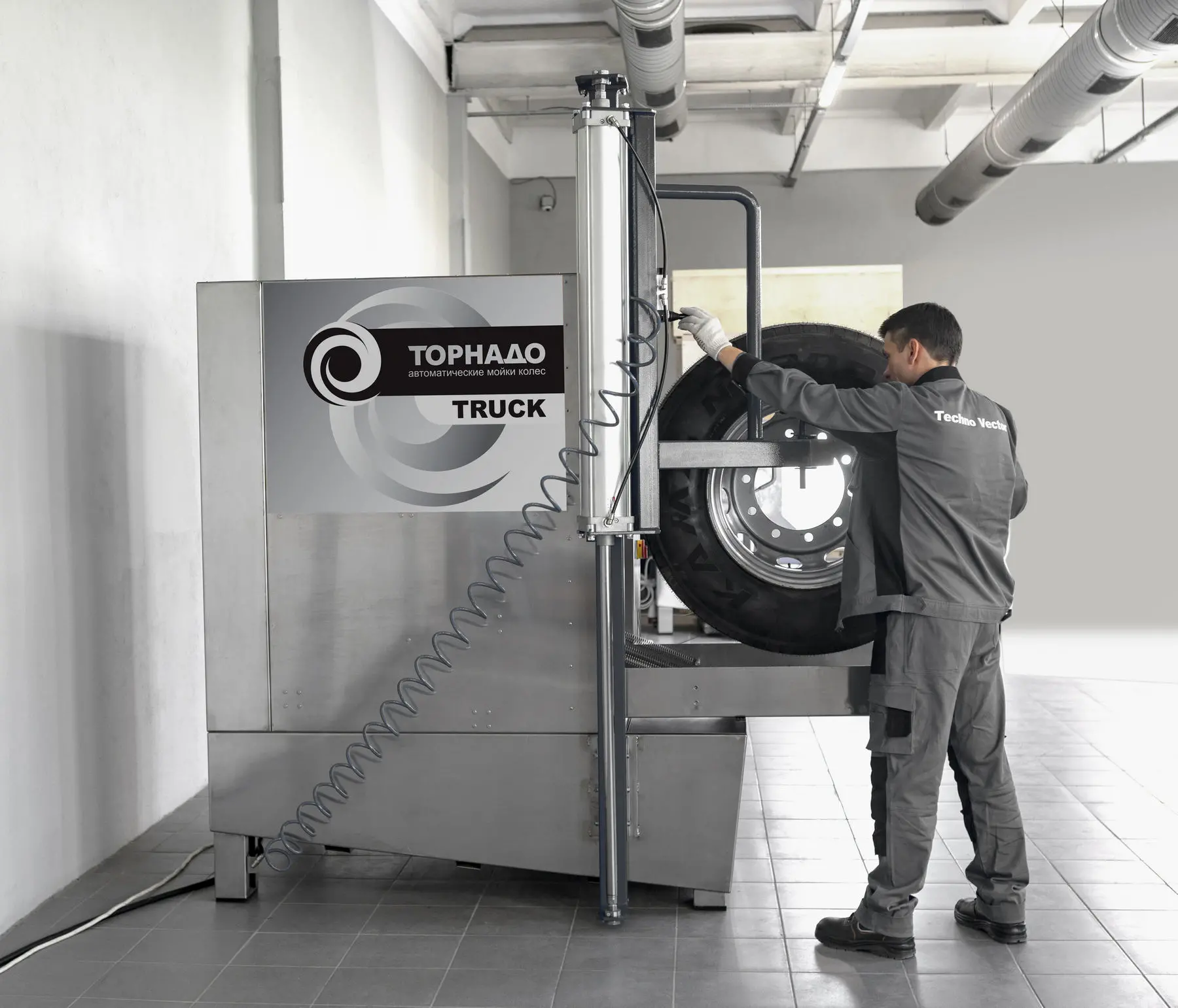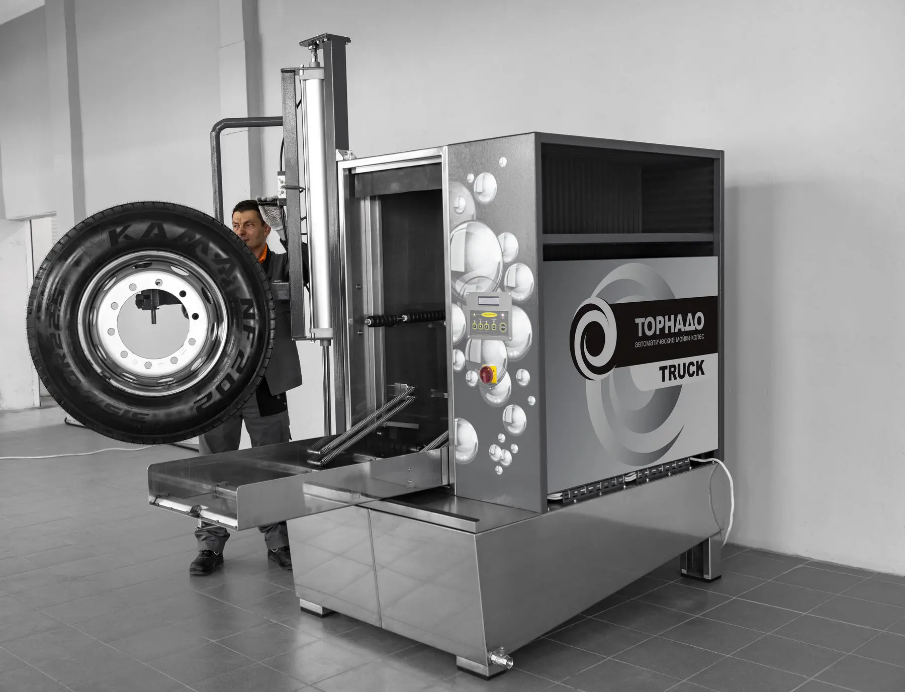 Использование автоматической мойки колес "ТОРНАДО Truck" позволяет значительно повысить качество обслуживания при шиномонтаже колес грузовых автомобилей, увеличить производительность шиномонтажного участка и сократить ручной труд автослесаря.