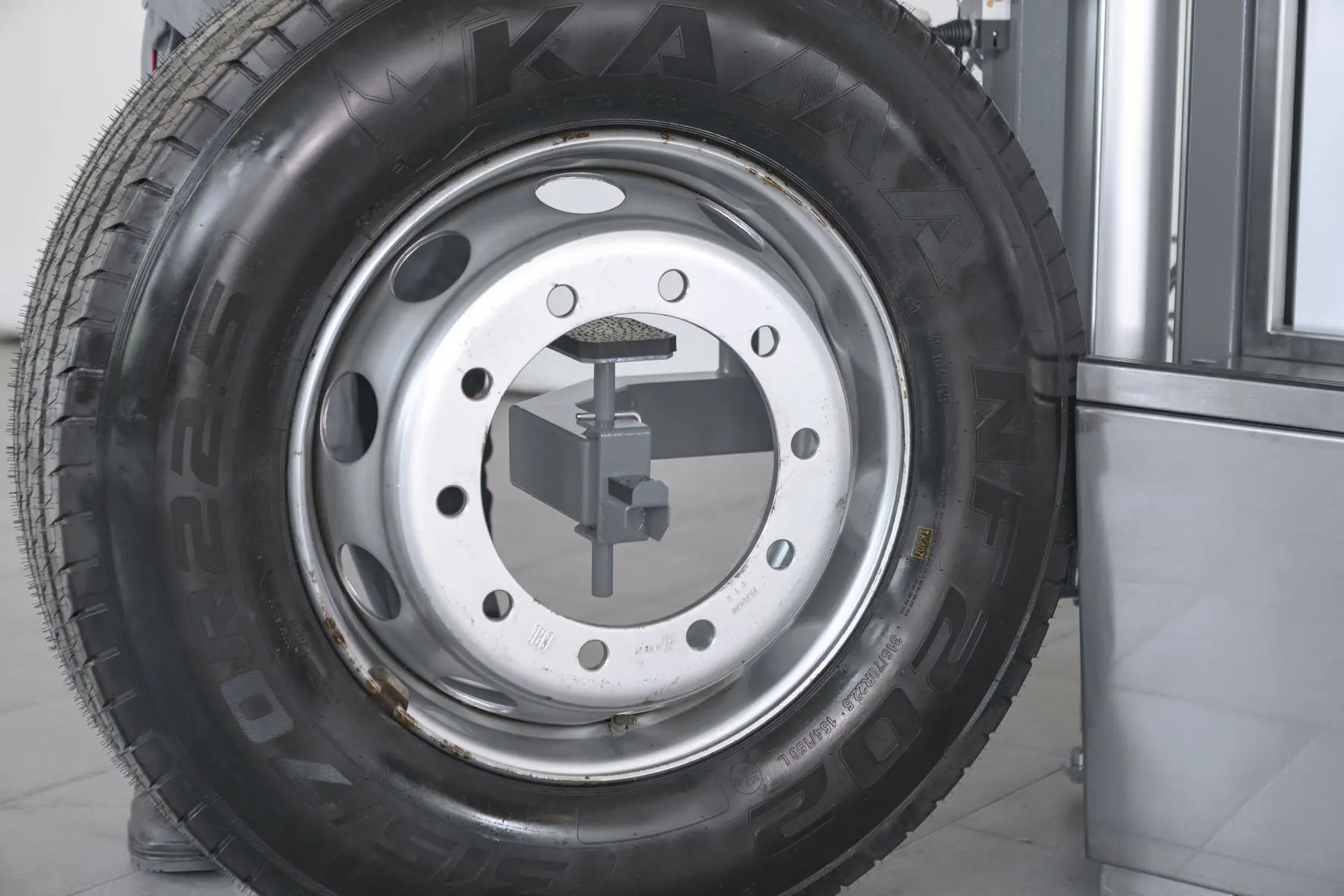 Максимальный размер колеса для этой модели мойки составляет 1200мм х 430мм, что позволяет обслуживать большинство грузовых автомобилей.