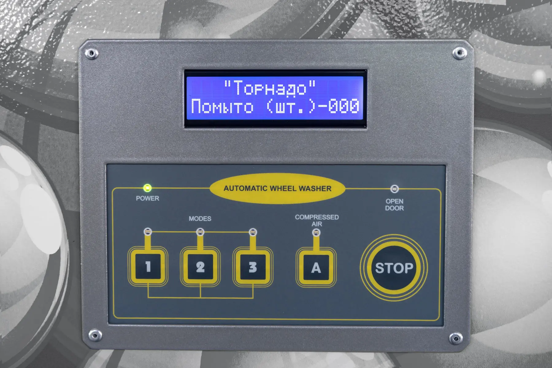 Так же на дисплее отображается количество вымытых колес, предупреждение о незакрытой двери моечной камеры, предупреждение о необходимости сменить воду, и другие сервисные сообщения.