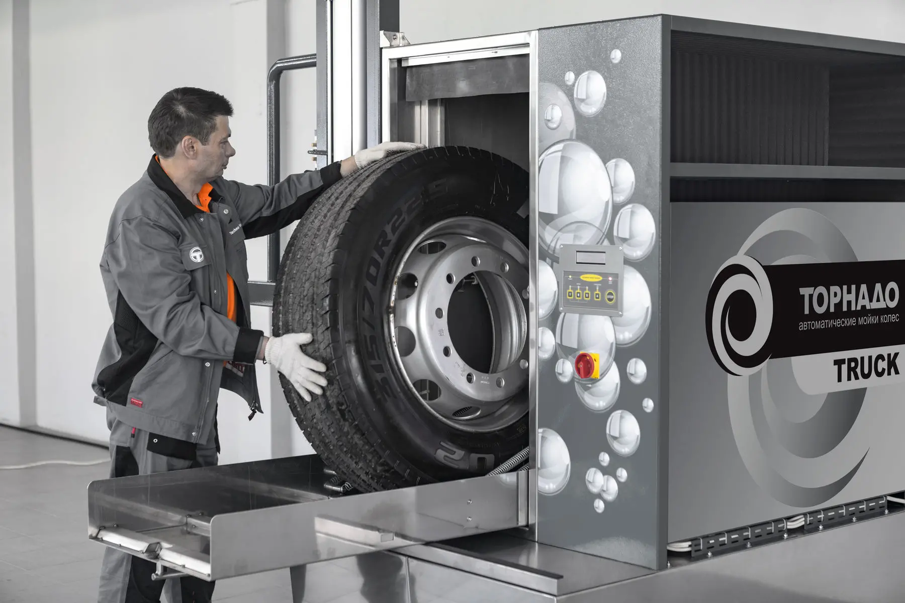 Использование автоматической мойки колес "ТОРНАДО Truck" позволяет значительно повысить качество обслуживания при шиномонтаже колес грузовых автомобилей, увеличить производительность шиномонтажного участка и сократить ручной труд автослесаря.