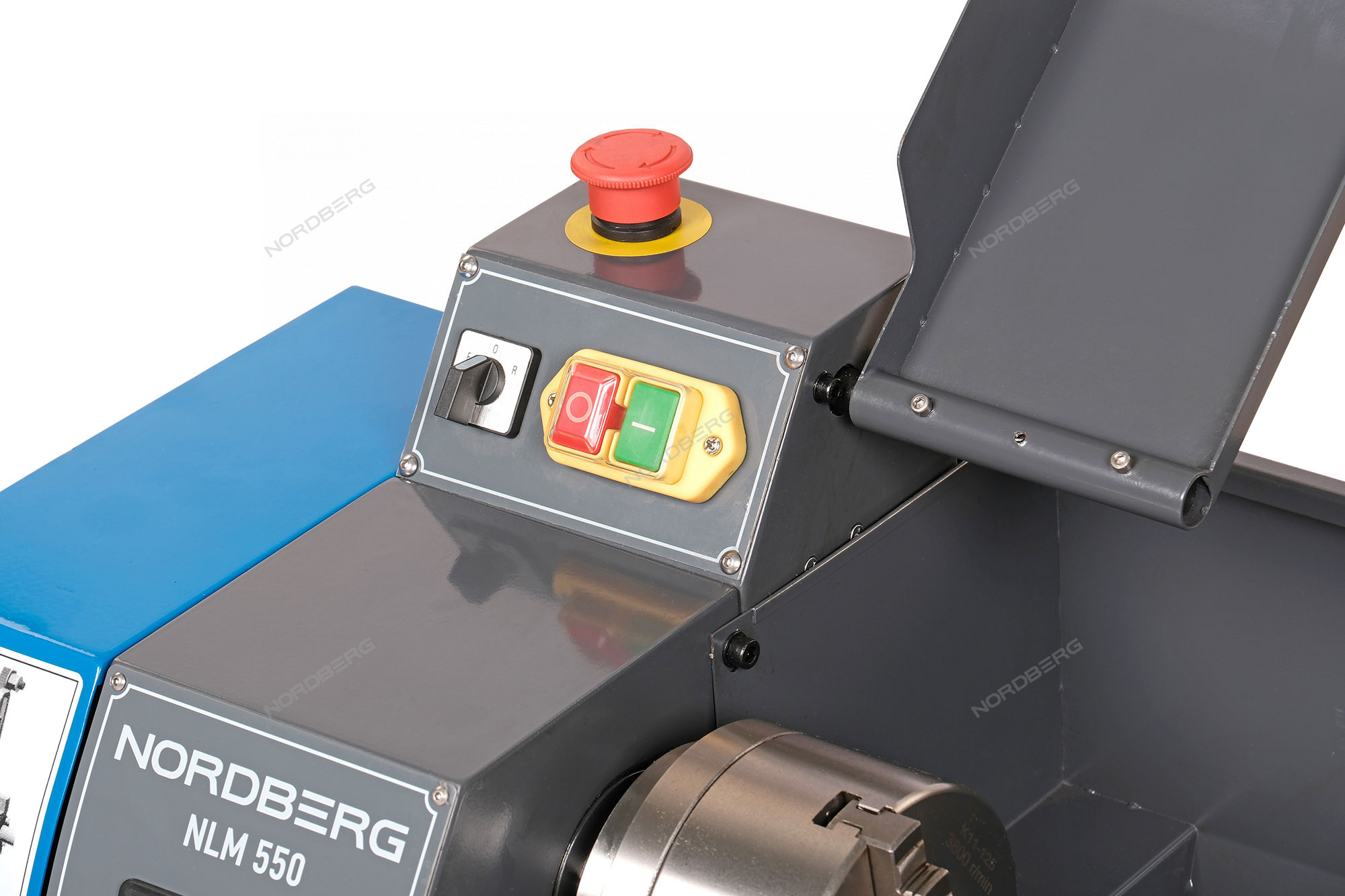 - Защитный экран с концевым выключателем защищает оператора от стружки.