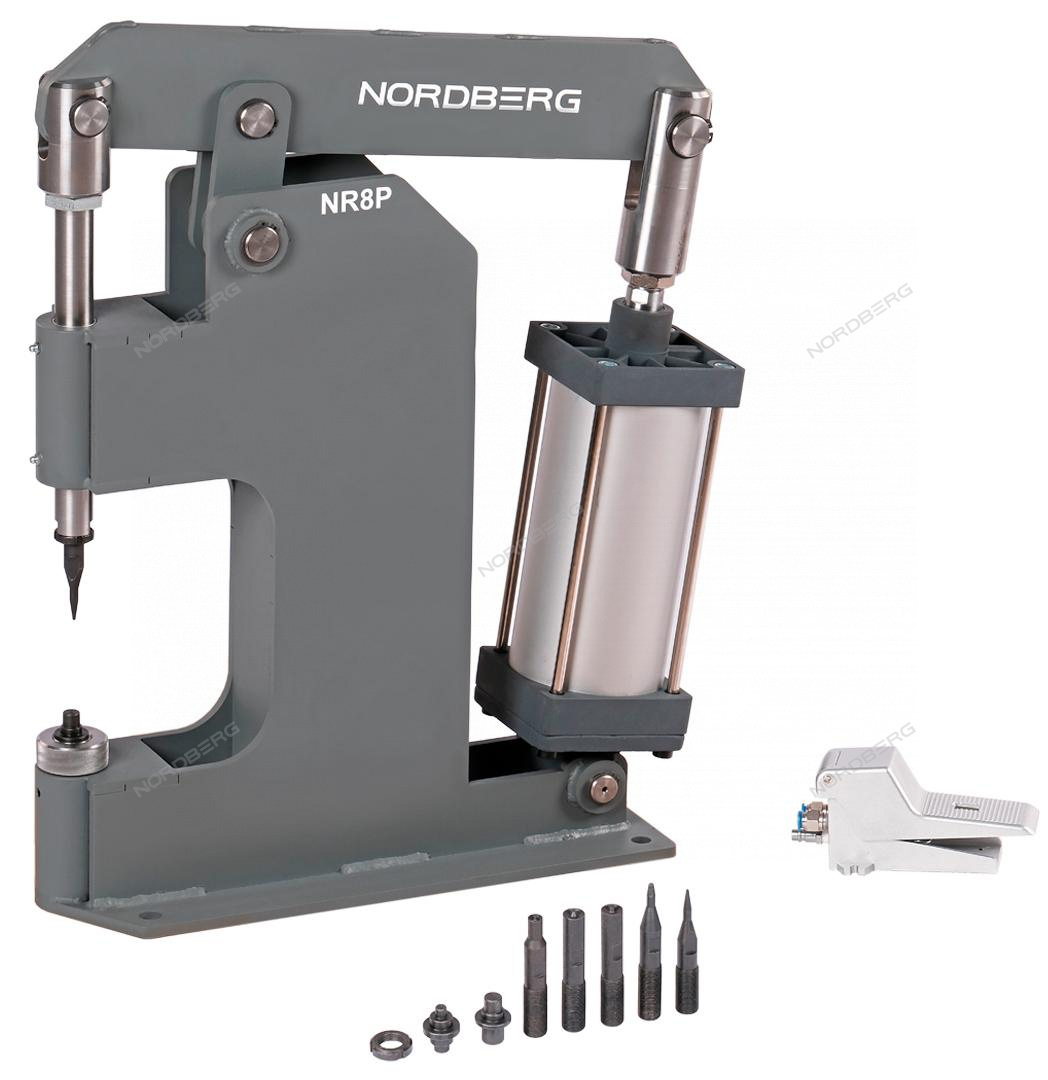 В комплекте прилагается полный набор пуансонов NR10PK для работы с разными рабочими диаметрами заклепок - до 10 мм.