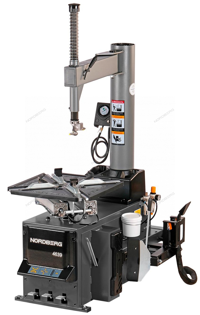 Станок шиномонтажный 380V п/автомат, 2х скор, стол с накладками, взрывная накачка, серый NORDBERG 4639G 380