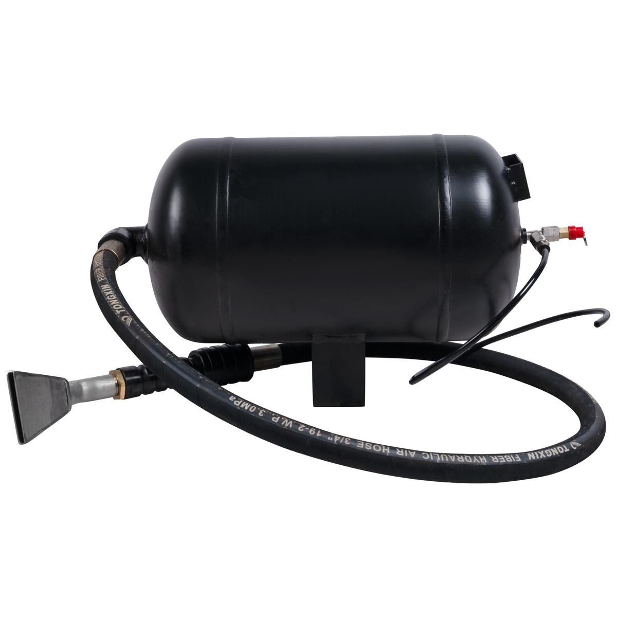 Резервуар бустера накачивается путем подключения к пневмолинии шиномонтажного станка. Может быть смонтирован на станках любых изготовителей. Сопло бустера устанавливается между покрышкой и диском. После открытия ручного клапана поток воздуха прижимает резину к краям диска, затем колесо накачивается обычным способом.