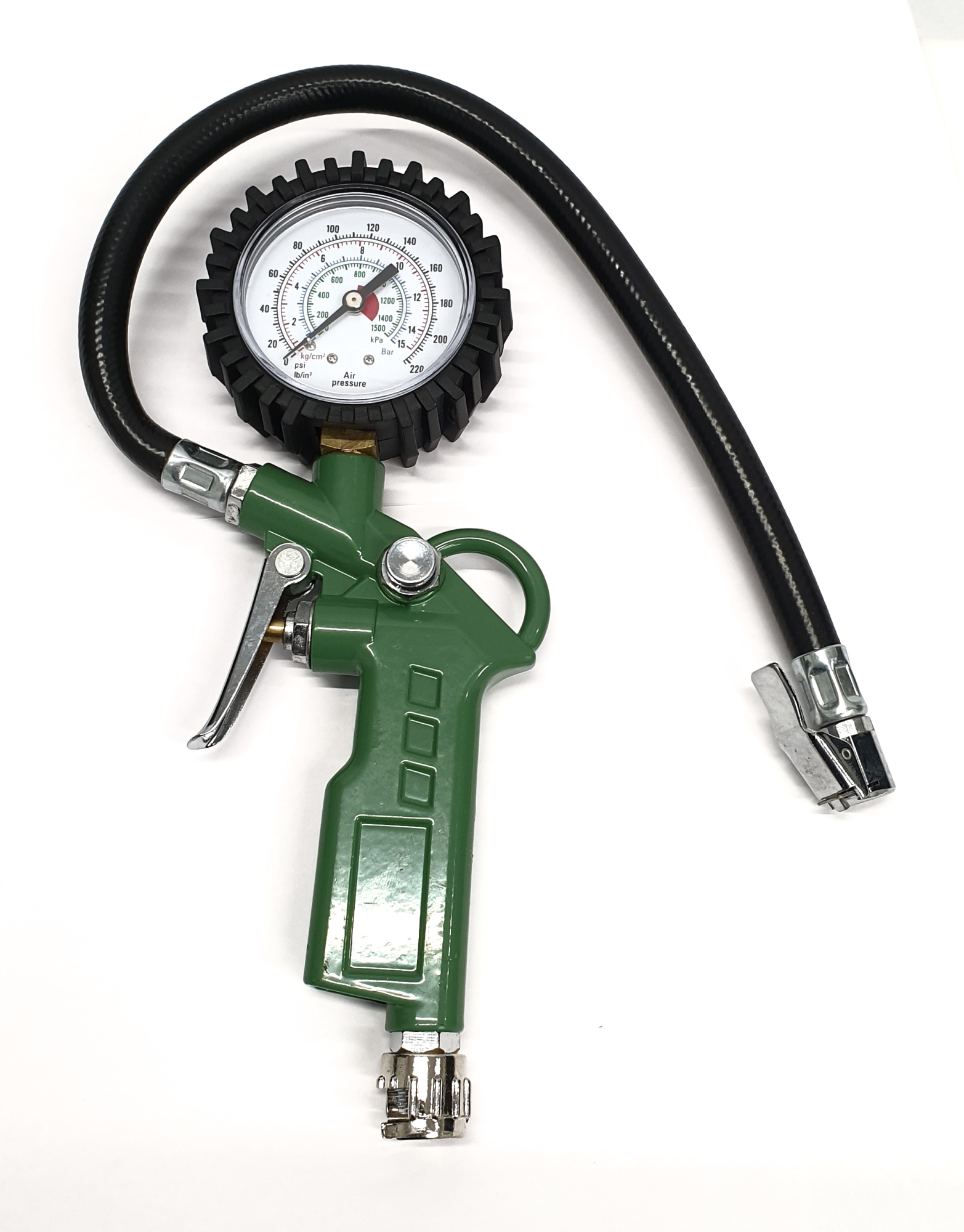 Пистолет для накачки. Точный манометр и клапан сброса давления позволяют полностью контролировать накачку необходимого давления воздуха. Отображение значений давления: Psi, Kg/sm, kPa, Bar. Максимальное давление: 15 Bar. Длина шланга: 400мм. Тип соединения: байонет. Особенности: Алюминиевый корпус. Манометр с защитной противоударной накладкой.