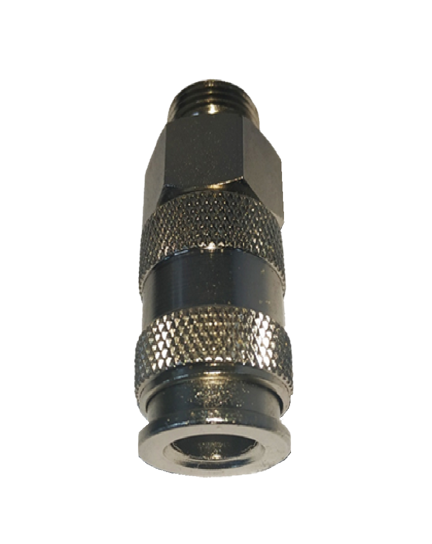 Быстроразъём стальной модели 0990128-06 от бренда Air-Boss предназначен для соединения пневматического инструмента с компрессором или шлангом. Имеет внешнюю резьбу М 3/8" («папа») и совместим с европейским стандартом быстросоединений — подходит для наконечников типа ОР, МР и АР.